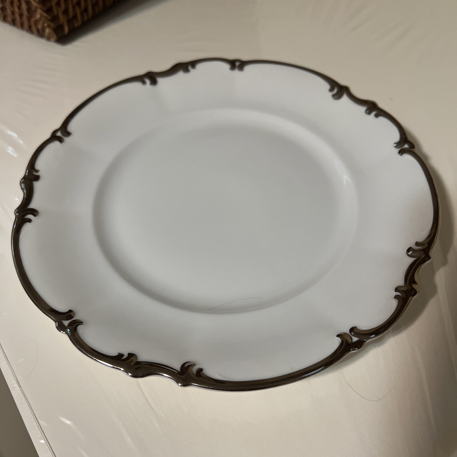 HUTSCHENREUTHER BAVARIA SYLVIA PASCO REVERE SALAD PLATE - Stamped 28 about 8" in diameter. shows no signs of ever being used. No cuts or scratches or wear on the platinum band.
